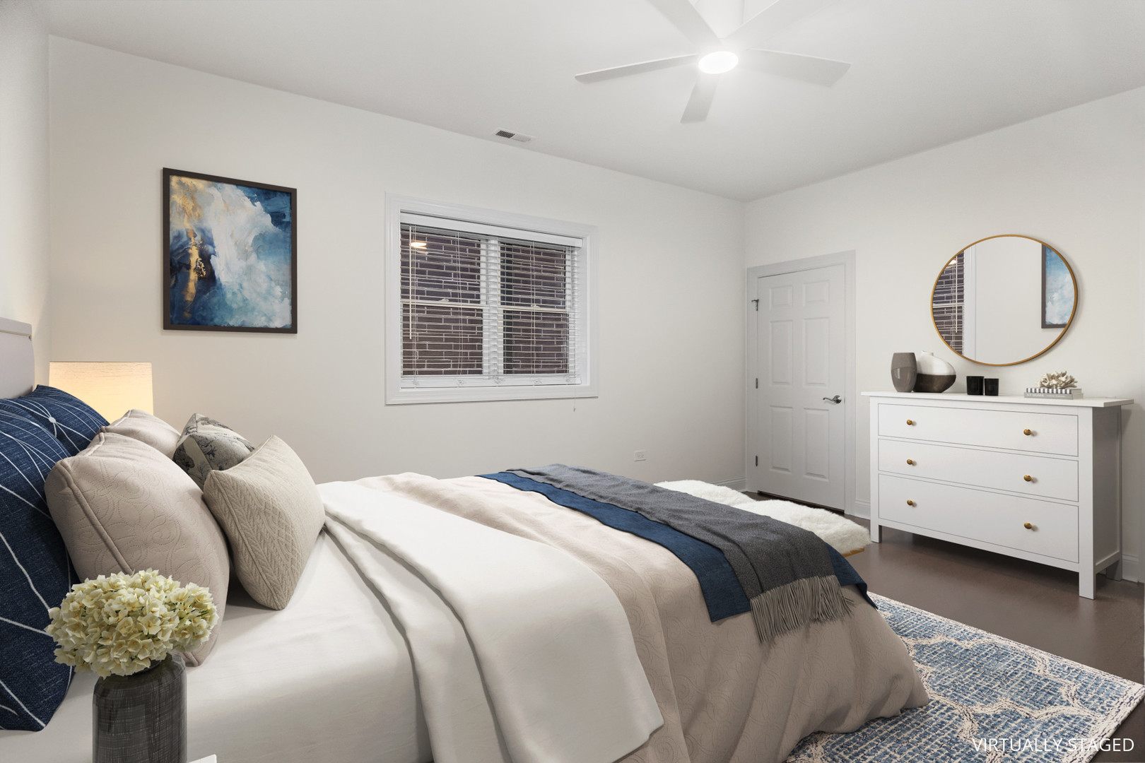 Perfect Roscoe Village south facing corner unit in an elevator building. Unit has amazing outdoor space with 26x8 deck off of the living room plus an amazing 27x10 rooftop deck with beautiful city skyline views! Great layout with an open living/dining/kitchen accented by the gas fireplace and door to the oversized covered deck. The kitchen has an enormous island with storage on both sides, a beverage refrigerator, pantry cabinet, Viking stove and Sub Zero refrigerator. 3 true bedrooms with great closet space finished with organizers. Primary bedroom has 2 walk in closets and a spacious primary bath with double sinks, linen cabinet, large whirlpool tub and separate shower. The hardwood floors extend throughout the unit and all bedrooms feature ceiling fans. There is a storage locker, bike storage and a heated garage space included.